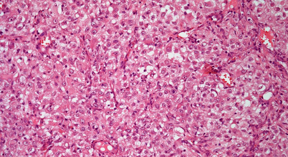 A 53-year old woman presents with multiple peritoneal nodules, and a biopsy is obtained.