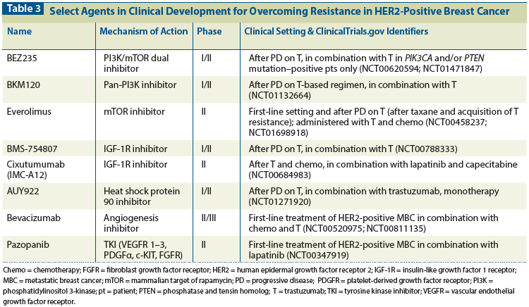 Table 3: Select Agents in Clinical Development for Overcoming Resistance in HER2-Positive Breast Cancer