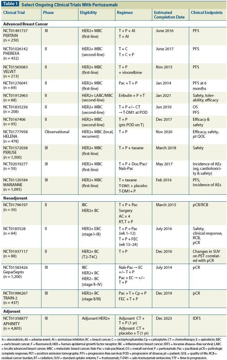 Table 1: Select Ongoing Clinical Trials With Pertuzumab