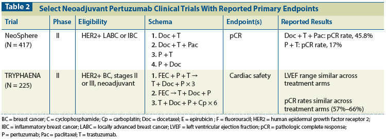 Table 2: Select Neoadjuvant Pertuzumab Clinical Trials With Reported Primary Endpoints