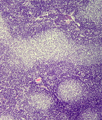 Follicular lymphoma, H&E stain; source: Patho, Wikimedia Commons
