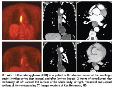 WASHINGTONEarly metabolic imaging with positron emission tomography (PET) identifies responders to neoadjuvant chemotherapy for advanced adenocarcinoma of the esophagogastric junction, German researchers reported at the Society of Nuclear Medicine (SNM) meeting (abstract 93).