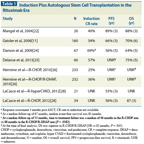 Table 1: Induction Plus Autologous Stem Cell Transplantation in the Rituximab Era