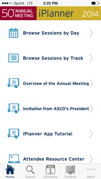 This year, I have planned ahead. I have downloaded the ASCO 2014 iPlanner (see image) and have added the sessions I want to attend to my personal schedule. Some of these sessions occur at the same time and I know I won’t attend everything I want, but that is to be expected (after all, that is what the Virtual Meetings are for). Additionally, the iPlanner is a big help in navigating the well-planned shuttle system, which will not only take you to your hotel, but if you know what you are doing, can take you pretty close to the restaurant of your choosing.