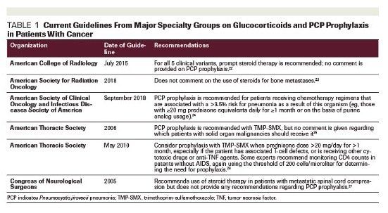 Table 1. Current Guidelines From Major Specialty Groups on Glucocorticoids and PCP Prophylaxis in Patients With Cancer