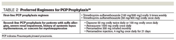 Table 2. Preferred Regimens for PCP Prophylaxis