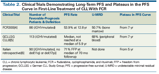 Table 2. Clinical Trials Demonstrating Long-Term PFS and Plateaus in the PFS Curve in First-Line Treatment of CLL With FCR