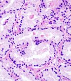 Acinar adenocarcinoma obtained by core needle prostate biopsy; source: KGH, Wikimedia Commons