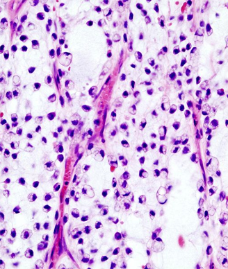Histopathologic image of myxoid liposarcoma arising in the deep soft tissue of the thigh; source: KGH, Wikimedia Commons