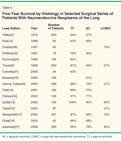 49. Garcia-Yuste M, Matilla JM, Alvarez-Gago T, et al: Prognostic factors in neuroendocrine lung tumors: A spanish multicenter study. Ann Thorac Surg 70:258-263, 2000.