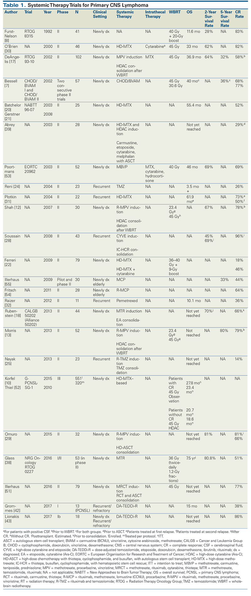 Table 1. Systemic Therapy Trials for Primary CNS Lymphoma