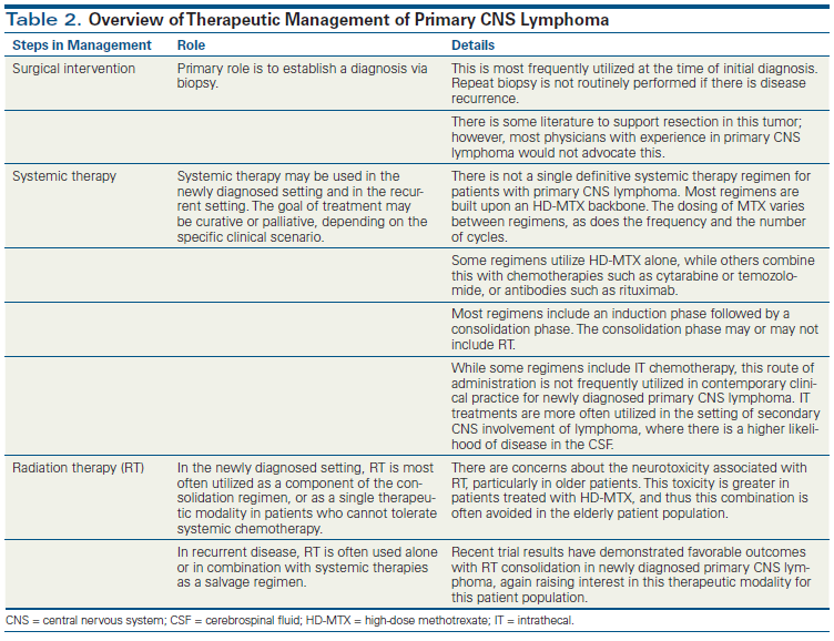 Table 2. Overview of Therapeutic Management of Primary CNS Lymphoma
