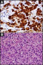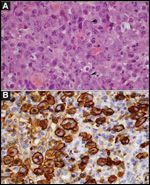 Demonstration of positive staining for ALK is usually sufficient to establish the diagnosis in cases with typical morphology (Figure 3B). Approximately 40% of systemic ALCLs do not express ALK and are classified as systemic ALCL, ALK-negative subtype.[9] Although the small-cell variant is invariably ALK positive, morphologic features of the lymphoma cells are not sufficiently different to distinguish ALK-positive and ALK-negative cases based on hematoxylin and eosin stains.
