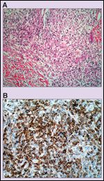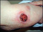 In 1985, Stein et al described a large-cell lymphoma defined by cohesive sheets of large lymphoid cells expressing the Ki-1 (CD30) antigen. This has led to the further recognition of CD30 expression as a common phenotypic hallmark for LyP and CD30+ CALCL. Most cases of CD30+ CALCL present as solitary or regional nodules and/or tumors that often show ulceration (Figure 4). The skin lesions may undergo spontaneous regression as in LyP, but often persist. Generalized or multifocal lesions are seen in about 20% of patients. Papules and plaques simulating morphea or ulcerated lesions resembling pyoderma gangrenosum have also been described.[14] Extracutaneous or regional lymph node involvement is seen in 10% of patients at presentation.