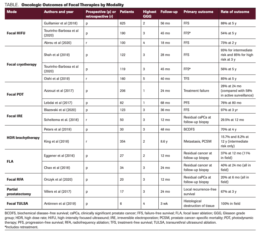 TABLE. Oncologic Outcomes of Focal Therapies by Modality