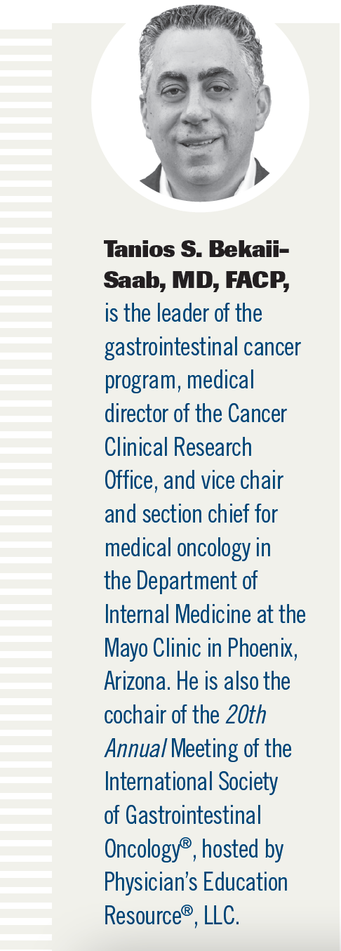 BEKAII-SAAB: We’re starting to see a lot of benefits with targeted therapies [and] immunotherapies. Unfortunately, these [benefits] remain limited to a small subset of patients across GI [malignant tumors]. One of the biggest challenges is how to expand those benefits to the majority of patients. [Can we do it] by breaking down those various cancers that [are segmented] into smaller and smaller subgroups? With immunotherapy, can we identify better biomarkers for those [with] non–microsatellite instability–high [disease]? It is obvious that there’s a small subgroup of patients who may benefit [from immunotherapy]; it is yet to be determined [how best to identify them]. How do we best move forward with those patients while at the same time creating new ways to bring immunotherapy closer to many of these cancers? [We ask the] same [questions] with targeted therapies.