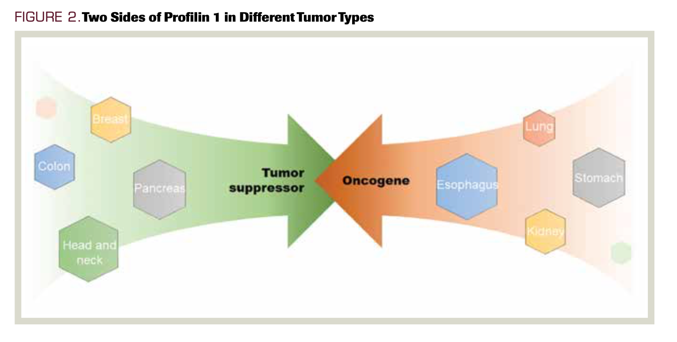 FIGURE 2. Two Sides of Profilin 1 in Different Tumor Types