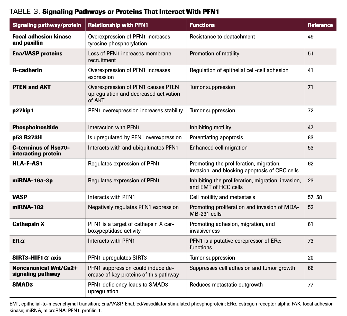 TABLE 3. Signaling Pathways or Proteins That Interact With PFN1