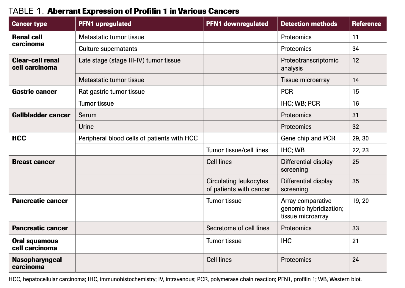TABLE 1. Aberrant Expression of Profilin 1 in Various Cancers