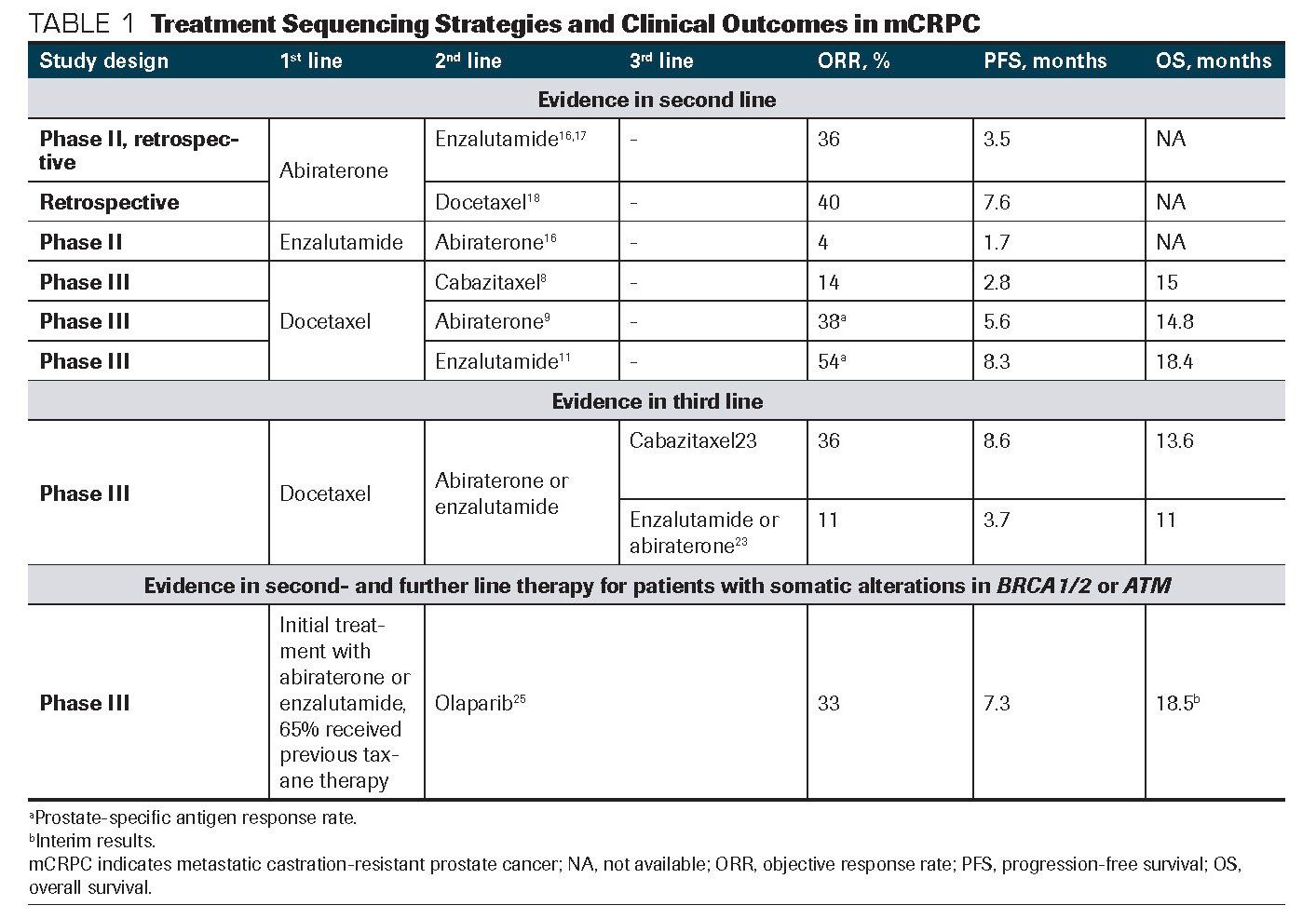 23. Maines F, Caffo O, Veccia A, et al. Sequencing new agents after docetaxel in patients with metastatic castration-resistant prostate cancer. Crit Rev Oncol Hematol. 2015;96(3):498-506. doi:10.1016/j.critrevonc.2015.07.013.