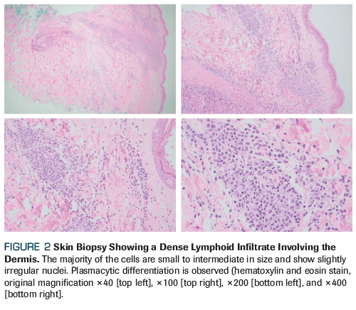 Figure 2. Skin Biopsy Showing a Dense Lymphoid Infiltrate Involving the Dermis