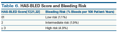 17. Lip GY, Frison L, Halperin JL, Lane DA. Comparative validation of a novel risk score for predicting bleeding risk in anticoagulated patients with atrial fibrillation: the HAS-BLED (Hypertension, Abnormal Renal/Liver Function, Stroke, Bleeding History or Predisposition, Labile INR, Elderly, Drugs/Alcohol Concomitantly) score. J Am Coll Cardiol. 2011;57:173-80.