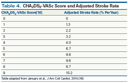 Table 4. CHA2DS2-VASc Score and Adjusted Stroke Rate