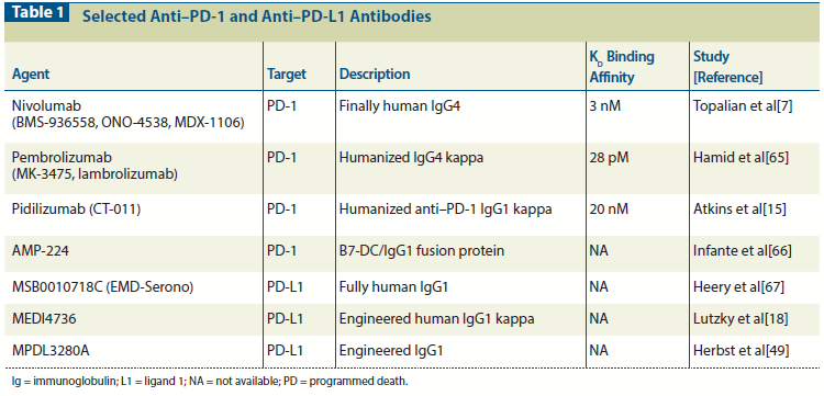 Table 1: Selected Anti–PD-1 and Anti–PD-L1 Antibodies