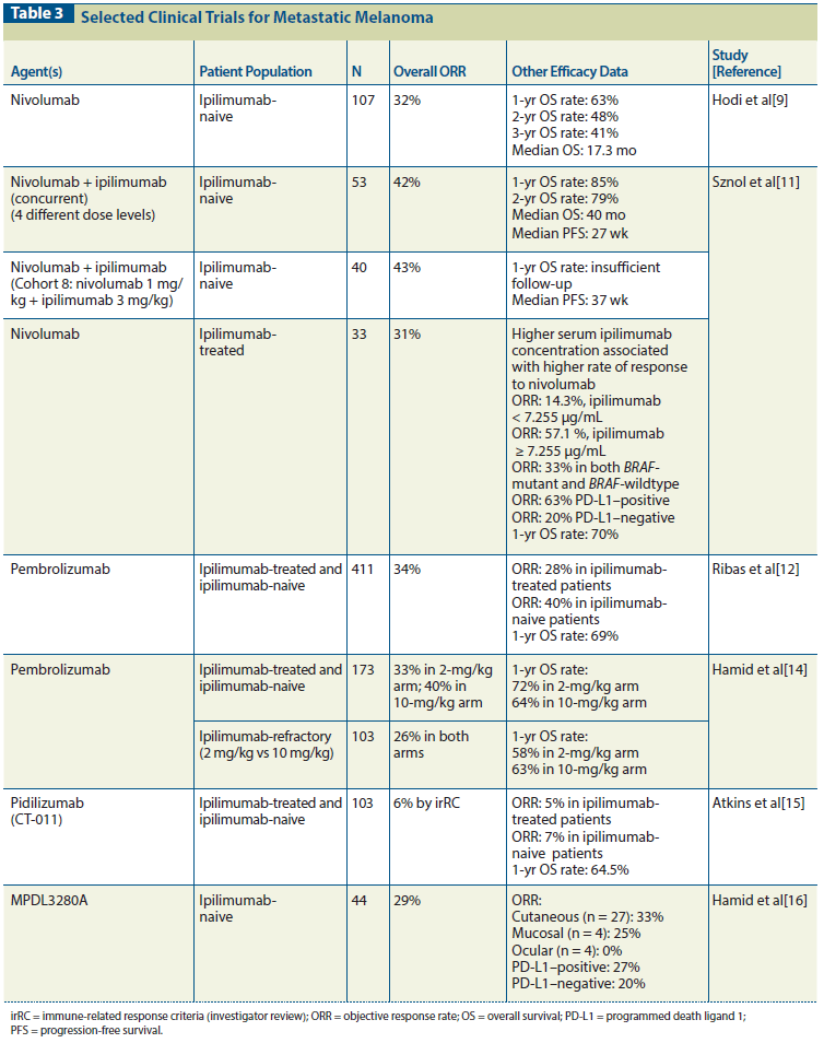 Table 3: Selected Clinical Trials for Metastatic Melanoma