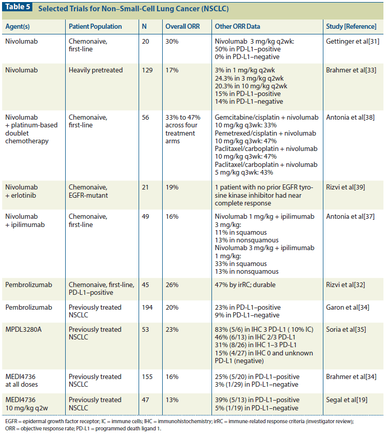 Table 5: Selected Trials for Non–Small-Cell Lung Cancer (NSCLC )