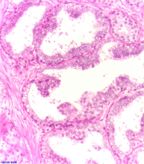 Microscopic view of prostatic intraepithelial neoplasia; note atypical epithelial cells; no malignant, infiltrating neoplasia visible; source: Alex Brollo, Wikimedia Commons