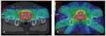 Sagittal (A) and Transverse (B) colorwash of a typical perineal proton boost