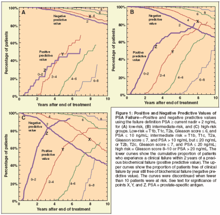Aref I, Eapen L, Agboola O, et al: Therelationship between biochemical failure andtime to nadir in patients treated with externalbeamtherapy for T1-T3 prostate carcinoma.Radiother Oncol 48:203-207, 1998.