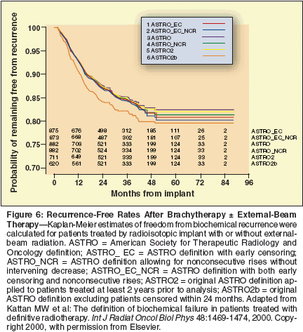 Kattan MW, Fearn PA, Leibel S, et al:The definition of biochemical failure in patientstreated with definitive radiotherapy. Int J RadiatOncol Biol Phys 48:1469-1474, 2000.