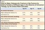 Risk for Major Osteoporotic Fracture or Hip Fracture for Elderly Females of Different Ages in the Absence of Anticancer Therapy, by the Online FRAX Calculator