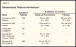 Amifostine (Ethyol) is a thio-organic prodrug that is believed to scavenge harmful free radicals produced by the interaction of ionizing radiation and water molecules. The utility of amifostine in patients receiving RT for lung cancer has been assessed in multiple randomized studies and a meta-analysis (Table 5).[63] The largest study was performed by the Radiation Therapy Oncology Group.[64] The incidence of grade ≥ 3 pulmonary toxicity was not statistically different between patients receiving amifostine and those who did not. This study has been criticized because the drug was administered once daily (4 d/wk) and the RT was delivered twice daily (5 d/wk), and thus 60% of the RT fractions were delivered without the protector. Conversely, there are several single-institutional randomized trials suggesting a protective effect of amifostine.[65-68]