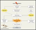 A self-sustaining cycle of inflammation and fibroproliferation ensues, driven by tissue hypoxia, macrophage accumulation and activation, oxidative stress, and profibrogenic (transforming growth factor–beta [TGF-β]) and proangiogenic (hypoxia inducible factor 1-alpha [HIF-1α], vascular endothelial growth factor [VEGF]) cytokine activity.[4,7] These molecular and cellular events lead to cell death, collagen deposition, and fibrosis in irradiated tissues.