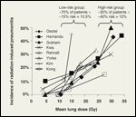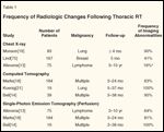 The incidence of lung injury as assessed with imaging is affected by the sensitivity of each modality. In general, perfusion SPECT is more sensitive than CT, which in turn is more sensitive than chest x-ray (Table 1). Comparisons between studies are challenging since the patient populations and RT doses vary. Nevertheless, these generalizations appear to be true in studies that have considered multiple imaging modalities.[18]