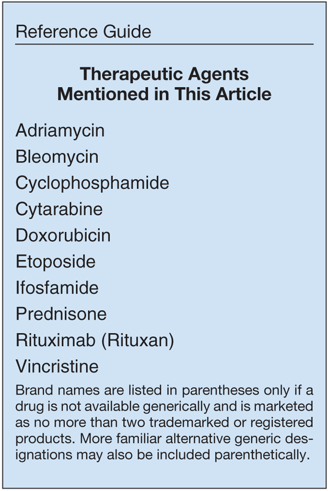 15. Miller TP, Dahlberg S, Cassady JR, et al. Chemotherapy alone compared with chemotherapy plus radiotherapy for localized intermediate- and high-grade non-Hodgkin’s lymphoma. N Engl J Med. 1998;339:21-6.