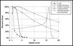 Charged particles such as protons and helium ions have also been used in the treatment of gallbladder and biliary cancers. In contrast to photons, the energy deposition patterns from charged particles are highly localized. This is due to a disproportionate absorption of the majority of their energy at the end of their track range-the so-called Bragg peak. The dose unit of charged particles is the Gray equivalent (GyE). Figure 4 demonstrates the energy deposition patterns of 15 MV photons, 9 MeV electrons, 30 MeV neutrons, 160 MeV protons, and Ir-192 seeds. Figure 5 compares dose distributions using IMRT techniques with conventional photon therapy and proton therapy in resected biliary cancer.