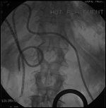 Takamura summarized the results in 88 patients undergoing metallic stenting with EBRT/Ir-192 therapy for unresectable disease. Forty-six (49%) patients developed reobstruction at a mean duration of 11.6 months posttherapy. In half of these patients, tumor recurrence resulted in obstruction. Cumulative biliary patency rates at 1 and 3 years were 52% and 29%, respectively. For 20 patients undergoing autopsy, obstruction from debris, sludge, stones, and bleeding was observed in 17.[42] Figure 1 shows the placement of intraluminal Ir-192 seeds via a percutaneous transhepatic biliary drainage tube.