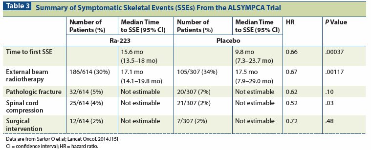 Table 3: Summary of Symptomatic Skeletal Events (SSEs) From the ALSYMPCA Trial
