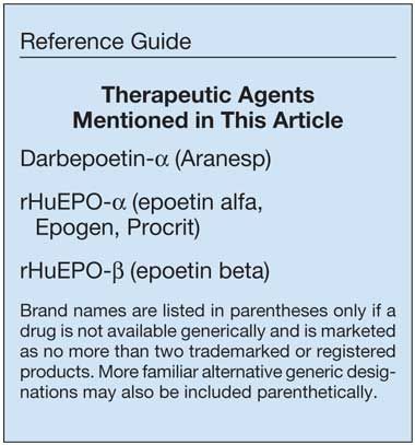 12. Bohlius J, Wilson J, Seidenfeld J, et al: Recombinant human erythropoietins and cancer patients: Updated meta-analysis of 57 studies including 9353 patients. J Natl Cancer Inst 98:708-714, 2006.