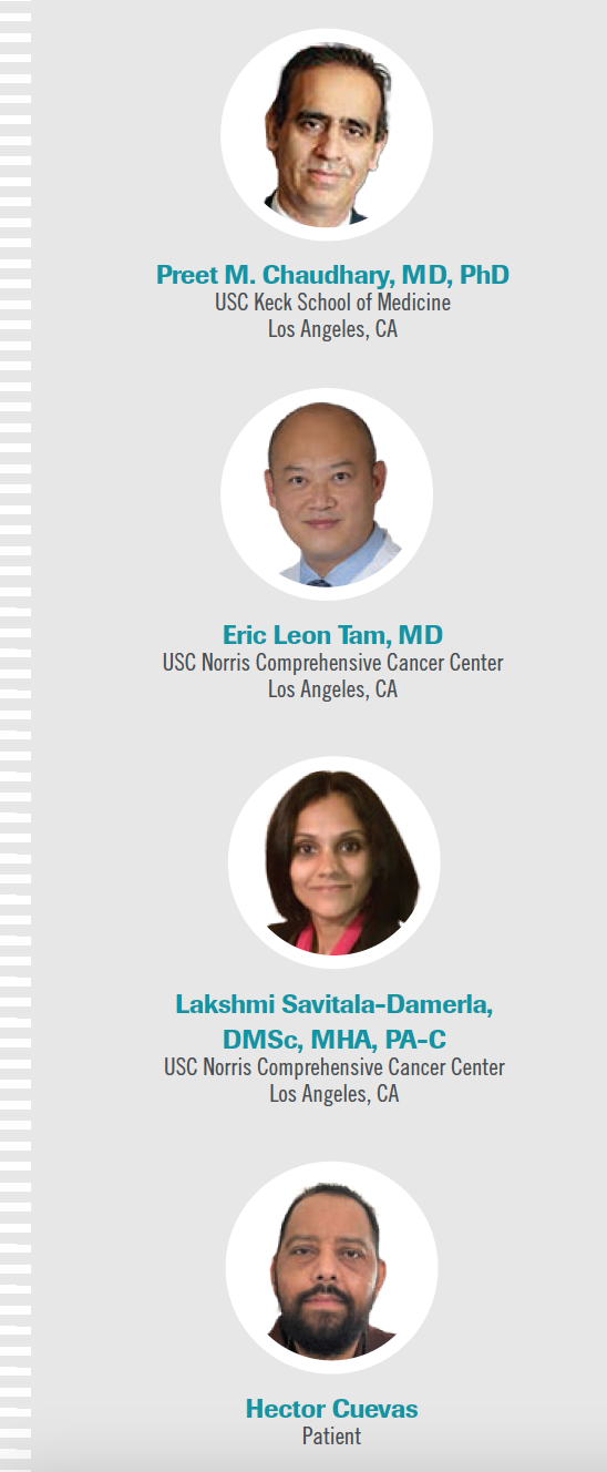 Preet M. Chaudhary, MD, and his medical team discuss graft-vs-host disease (GVHD) and their treatment experiences alongside a patient, Hector Cuevas.