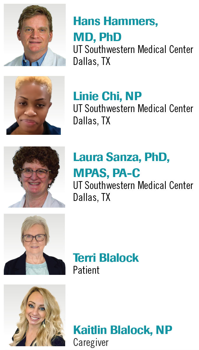 During a recent Around the Practice® program, Hans Hammers, MD, PhD, discussed renal cell carcinoma (RCC) with Terri Blalock, a patient who has the disease, and her caregiver and granddaughter, Kaitlin Blalock, NP. They spoke about what led to the diagnosis, how they have managed toxicities, and their positive outlook.