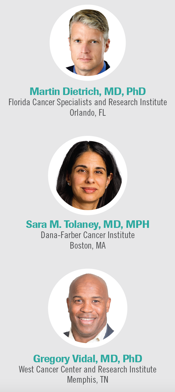 In a Between the Lines segment hosted by CancerNetwork®, Sara M. Tolaney, MD, MPH, chief of the Division of Breast Oncology and associate director of the Susan F. Smith Center for Women’s Cancers at Dana-Farber Cancer Institute, as well as associate professor of medicine at Harvard Medical School in Boston, Massachusetts, sat down with colleagues Martin Dietrich, MD, PhD, and Gregory Vidal, MD, PhD, to discuss optimal sequencing of available agents and their strategies for treating patients whose disease has progressed following standard frontline therapy. Dietrich is a medical oncologist at Florida Cancer Specialists and Research Institute and an assistant professor of internal medicine at the University of Central Florida in Orlando. Vidal is an oncologist at the West Cancer Center and Research Institute in Memphis, Tennessee.