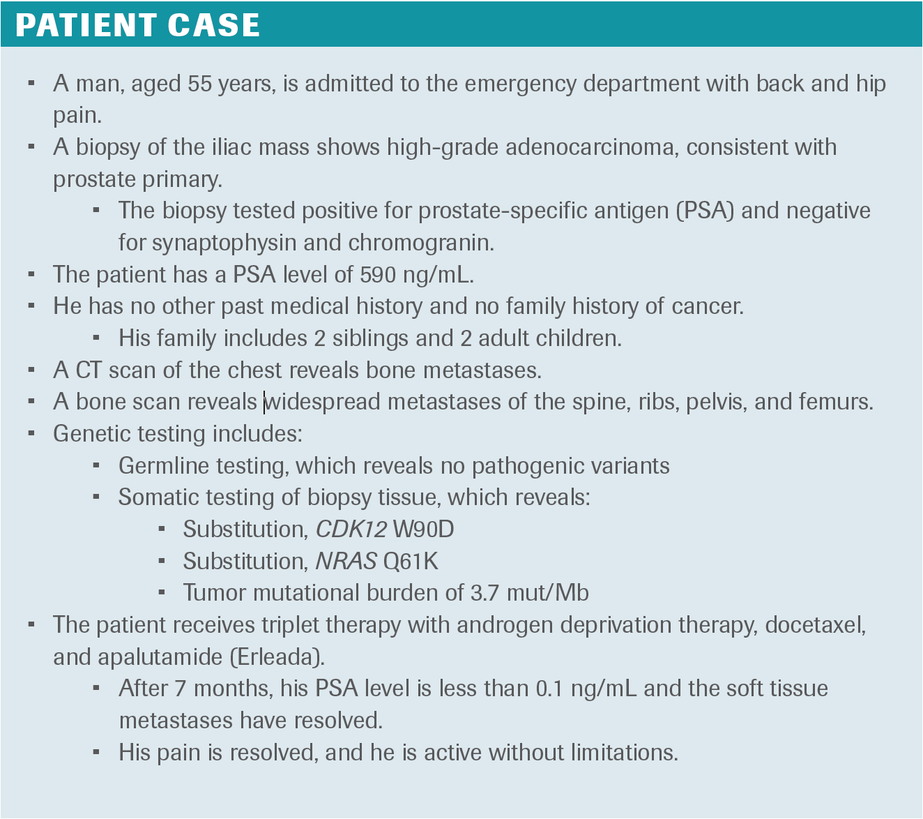 ZHANG: I would [again recommend] sending for genetic testing when possible, especially for patients with metastatic disease, or even in the high-risk, localized setting. Per the guidelines, it’s important to test these [patients] and to find that 10% or 15% who might have actionable mutations and alterations. If we don’t test, we won’t find them.
