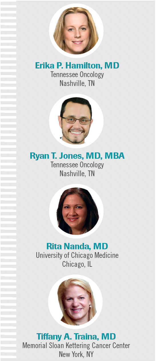 At an Around the Practice® presentation hosted by CancerNetwork®, specialists in breast cancer management discussed treatment options for patients with HER2-positive breast cancer and brain metastases. The panel was led by Erika P. Hamilton, MD, director of the Breast Cancer and Gynecologic Cancer Research Program at Sarah Cannon Research Institute at Tennessee Oncology in Nashville; Ryan T. Jones, MD, MBA, a radiation oncologist at Tennessee Oncology; Rita Nanda, MD, director of the Breast Oncology Program, associate professor of medicine, and associate professor of the Comprehensive Cancer Care Research Center at the University of Chicago Medicine in Illinois; and Tiffany A. Traina, MD, attending physician, vice chair of Oncology in the Department of Medicine, and section head of the Triple Negative Breast Cancer Clinical Research Program at Memorial Sloan Kettering Cancer Center as well as associate professor of medicine at Weill Cornell Medicine in New York.