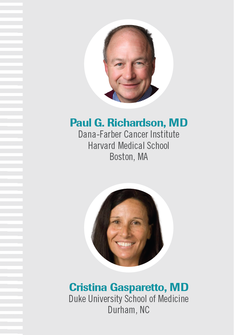 Gasparetto and Richardson agreed that ixazomib offered a special advantage as an oral drug. “What’s so exciting about ixazomib is that as an orally bioavailable boronate peptide, that rapid-on, rapid-off pharmacology has always made it very attractive, particularly for our frailer patients,” said Richardson. The oral option has also been particularly helpful during the COVID-19 pandemic, he noted.
