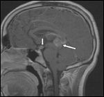 • Assessment and Diagnosis-Presenting symptoms in patients with germ cell tumors depend on the location of tumor. Suprasellar germ cell tumors can present with isolated diabetes insipidus caused by pituitary stalk thickening, hydrocephalus, visual disturbances, delayed growth, or precocious puberty.[76,77] Pineal tumors can cause hydrocephalus due to early compression of the aqueduct, and paralysis of upward gaze and visual convergence due to pressure on the tectum of the midbrain (Parinaud syndrome). Leptomeningeal seeding occurs in about 10% to 15% of patients and can cause symptoms of spinal cord compression due to mass effect from tumor.[77]